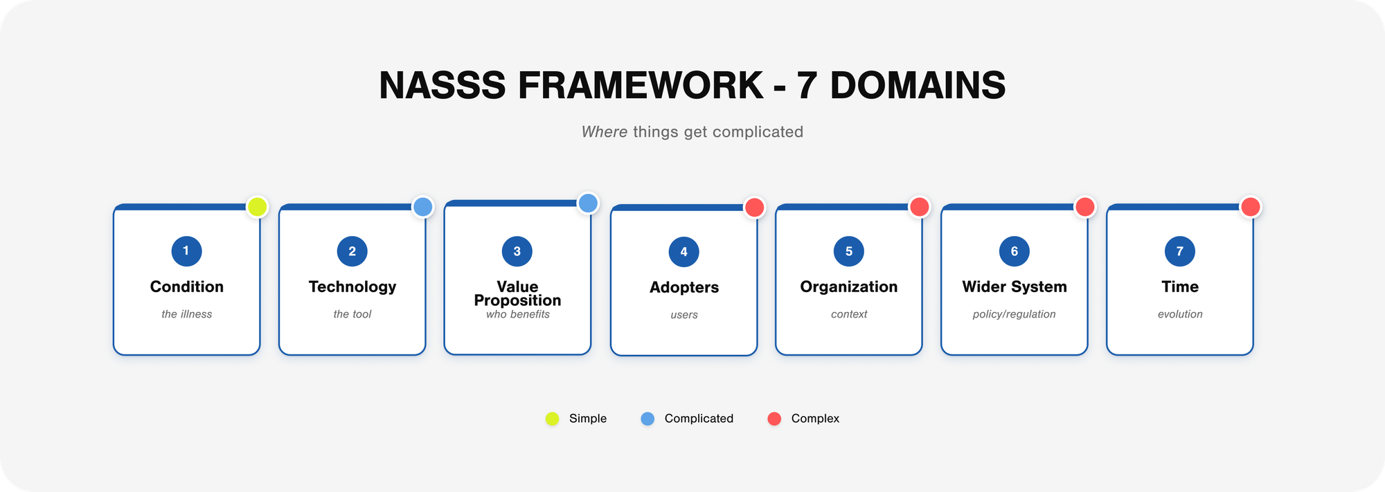 NASSS maps complexity across seven domains.