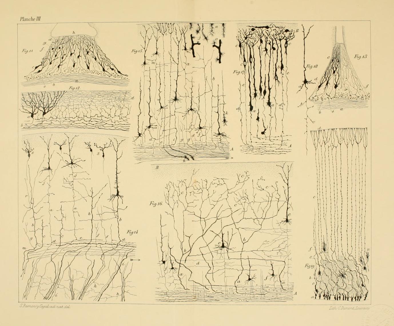 Ramon y Cajal is the epitome of art intersecting science. The Spanish neurobiologist was best known for his study of the histology of the human central nervous system. He created a lab in a spare bedroom where he would painstakingly slice, stain, and study tissue samples from the brain and spinal cords. He produced sketches and illustrations of what he observed, which have become regarded as some of the most important works of art in human history, ultimately leading to him winning a Nobel prize in the early 1900s. The illustrations Cajal created to map the architecture of the human nervous system fundamentally changed the way we understood the form and function of the brain. His interpretation and reproduction of axons and dendrites using paper and ink unlocked how others viewed the world. That's the point of art - presenting an idea in a way that opens another person's understanding of the idea being shared.