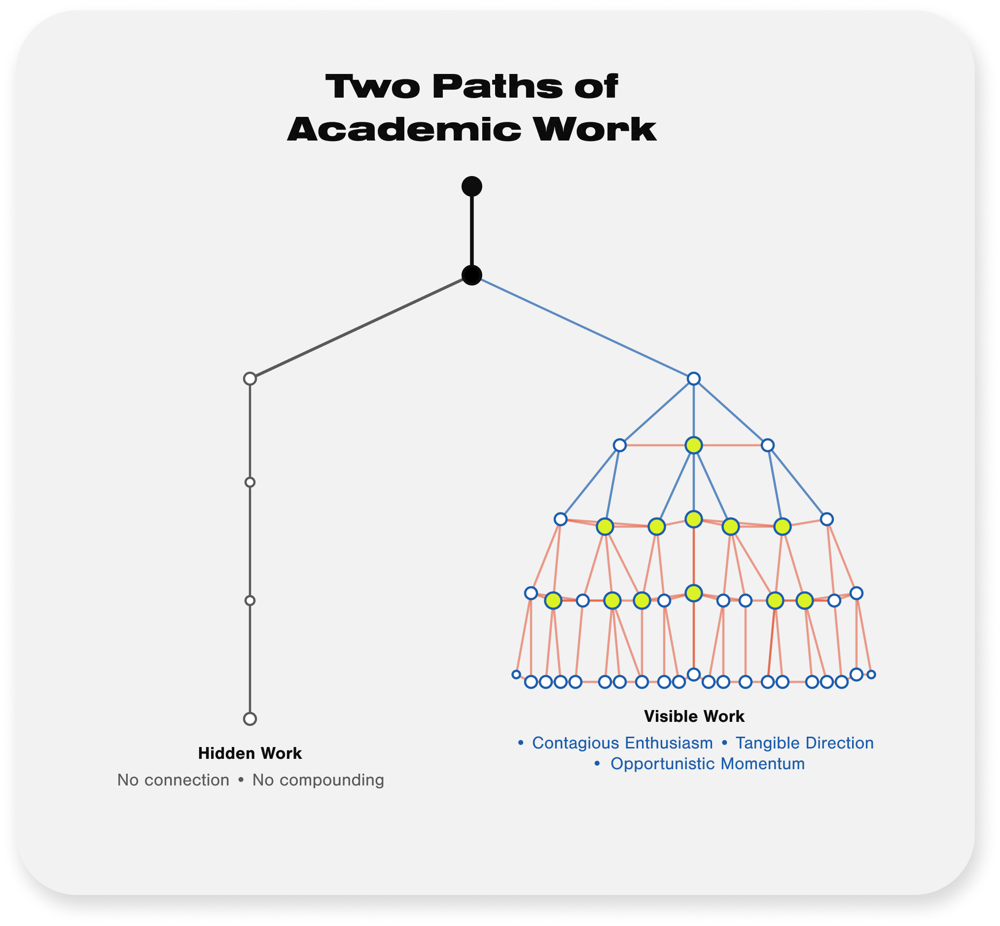 In academic EM, keeping your work hidden until it’s “ready” trades away collaboration, impact, and mentorship. The real leverage comes from making your work visible while it’s still unfinished, because that’s when it has the most doorways for others to enter.